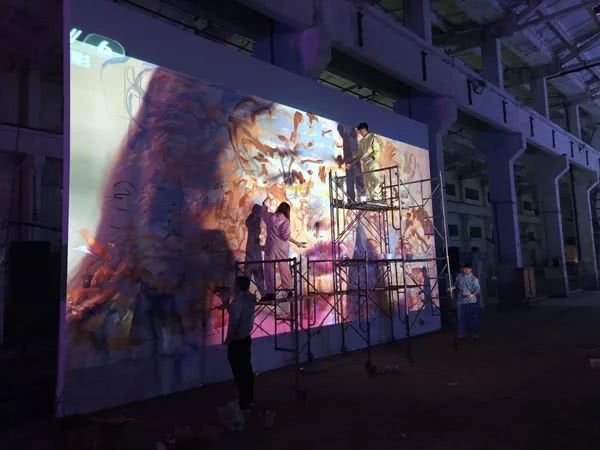 翟轩弘在四川美院油画系读书时,就开始合作大型商业项目。在对方提供的广告灯箱上,翟轩弘将风景绘画与装置结合,完成了200多平的墙面装置,这次合作也让他诞生了风景绘画装置系列作品。