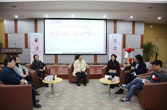 11月29日,由江苏省作家协会和南通大学主办的“江苏青年文学论坛”第二场专场活动在南通大学举行。省作协党组成员、书记处书记、副主席汪政,南通大学副校长樊小东,南京师范大学文学院教授何平等出席活动。本场论坛以“现实的我们,我们如何现实”为主题,《长篇小说选刊》副主编宋嵩、《上海文学》编辑部主任来颖燕、南京师范大学文学院副教授朱婧,以及青年作家郑小驴、胡竹峰、大头马等展开对谈,对谈活动由南通大学文学院老师秦香丽主持。