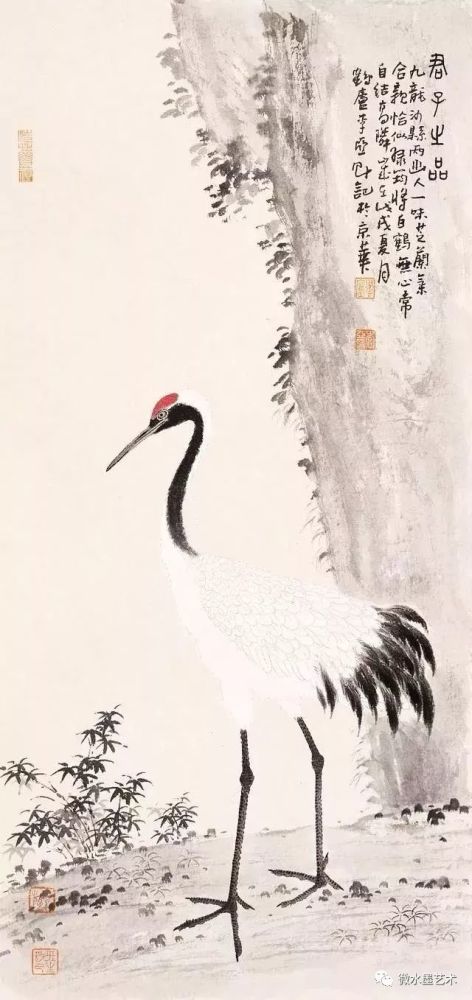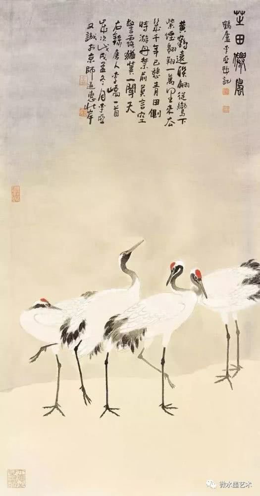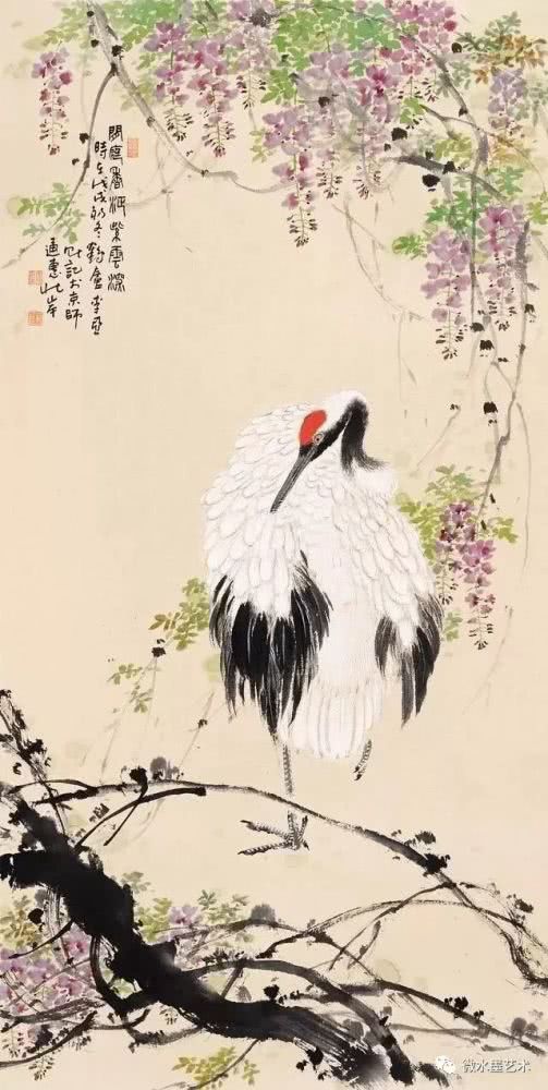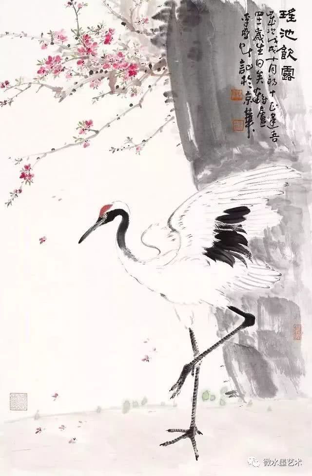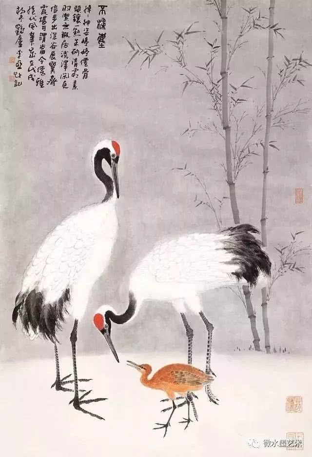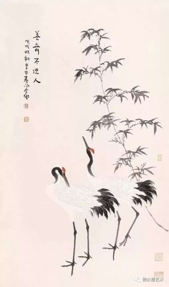 仙鹤也是画家们很喜爱表现的题材,这不仅是对仙鹤优美体态及高雅情趣的赞美和表现,更是将其与长寿、贺寿等美好寓意联系在一起,表达画者对人生及美好事物向往的一种崇高体现。