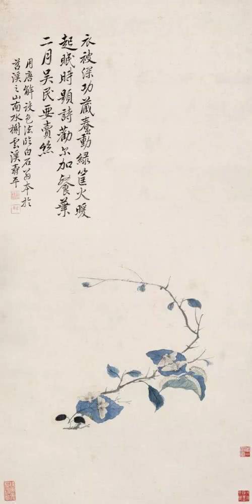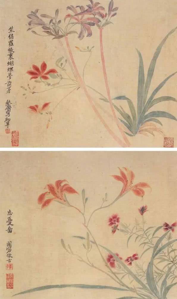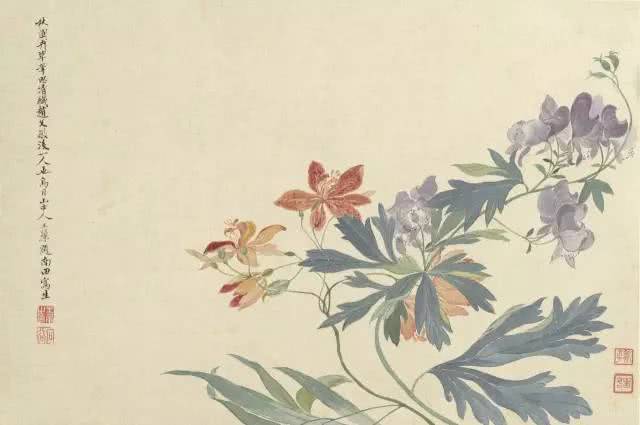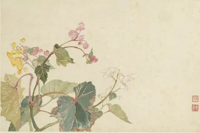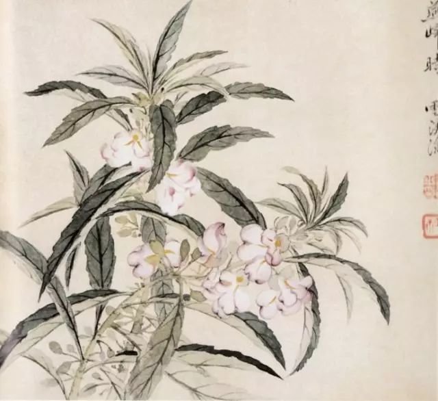 恽寿平的花鸟画没有墨线,其法称为“没骨法”,其花称为“没骨花”,他笔下的花叶虽然无线无骨,却有一种天然的风骨和神韵,清丽脱俗,一如他高洁的品行。画法虽无骨,却胜似有骨,而且现实中恽寿平是个很有骨气的画家,他传奇精彩的人生一点也不逊于他笔下的花鸟画。