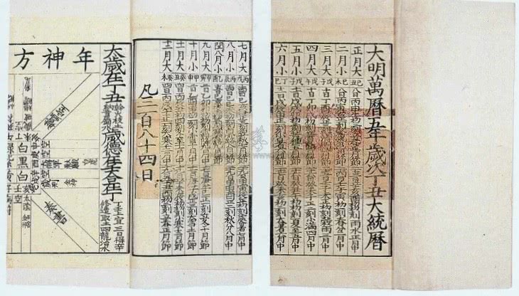 到了明朝年间,历书已经成为了百姓家中必不可少的家用书籍,因此专门掌管天文立法的机构钦天监,每年都会编选、印刷、颁发《大统历》,以供百姓使用。由于明朝立法严格,对于历书方面的印刷管制也定制了相应的法律,比如历书只能由国家统一印发,每本书的后面必须盖有官印。如若发现有人私自编制、印刷历书,等待着他们的就是极为严重的杀头之罪。