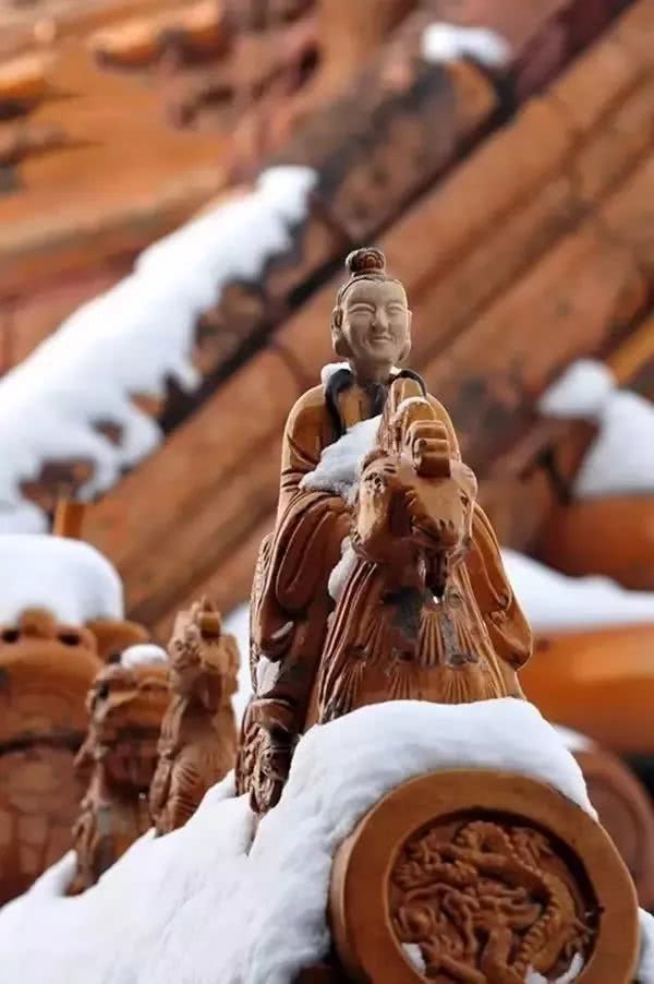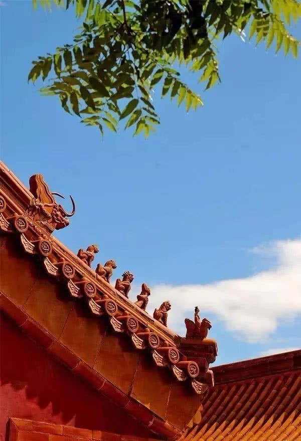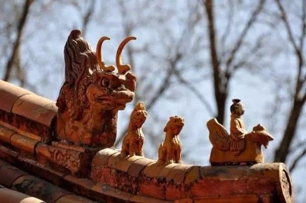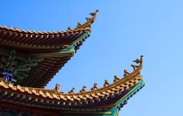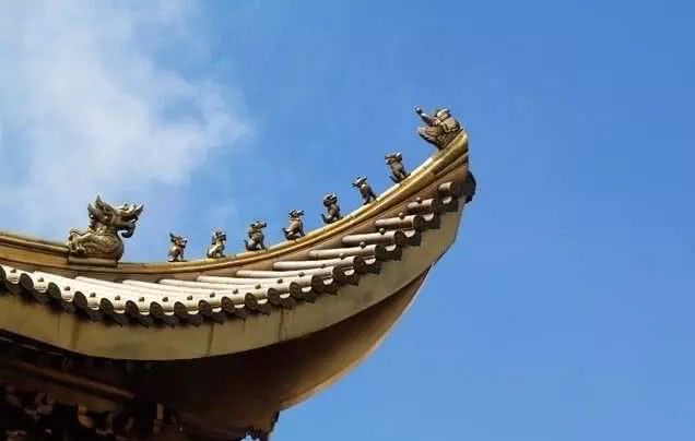 起初为实用而生,慢慢大家都觉得有些单调了,便在角檐垂脊上装饰了姿态各异的走兽,我们称之为飞檐脊兽。这些端坐在檐角的走兽不仅有装饰作用,它覆盖在殿顶与檐角两坡瓦垄的交汇处,又能起到防漏雨的功能,一举两得啊!