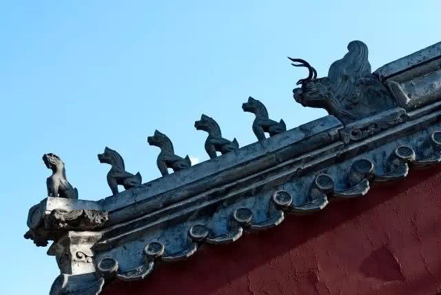 一般建筑上是三个,两边加起来就是六个,因此,所以就叫做“五脊六兽”。交泰殿是皇后在重要节日接受朝贺的地方,有七个小兽。乾清宫,是明清两代帝王的寝宫,在脊上就排列有九个走兽,按理是最高等级。