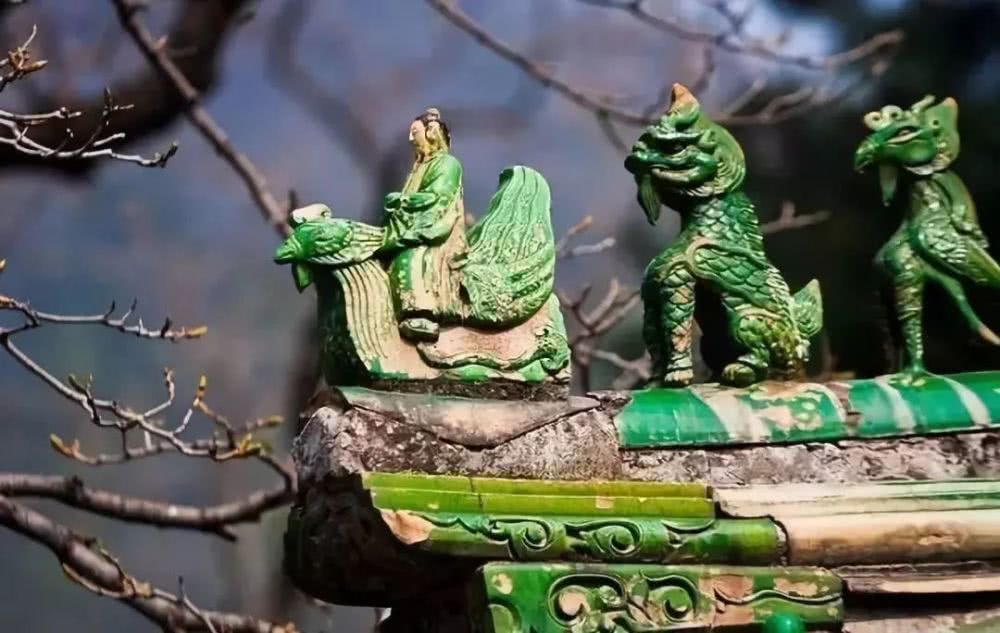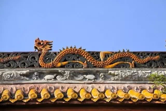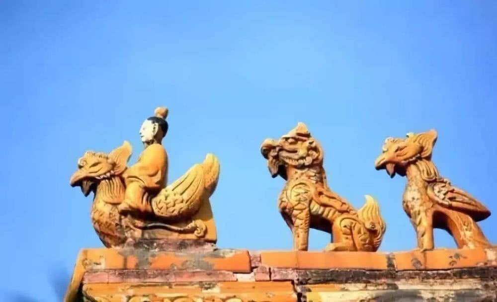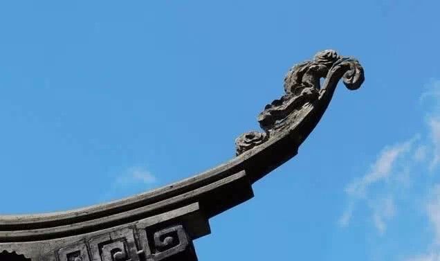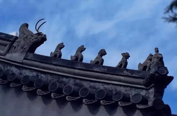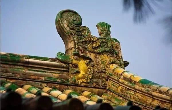 最后一个在脊上的是鸱(chī)吻,它是明清时期建筑的正脊两头安放面朝里的龙首形瓦件,又称“正吻”。是明清时期建筑屋顶正脊两端的装饰构件,为龙头形,龙口大张咬住正脊。