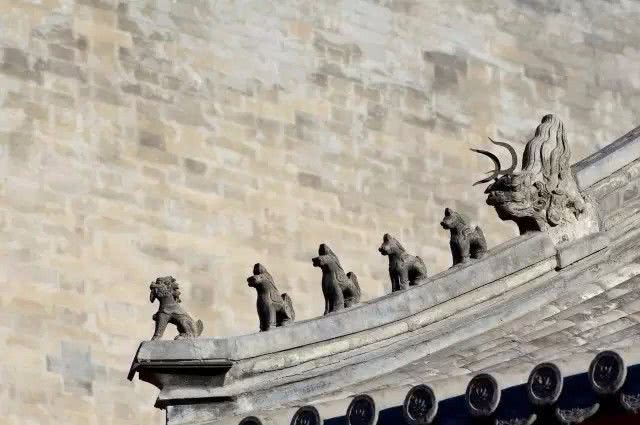这些小兽通常摆放在这些脊上。关于建筑上神兽的使用,清朝规定,仙人后面的走兽应为单数,按三、五、七、九排列设置,建筑等级越高,走兽的数量越多。