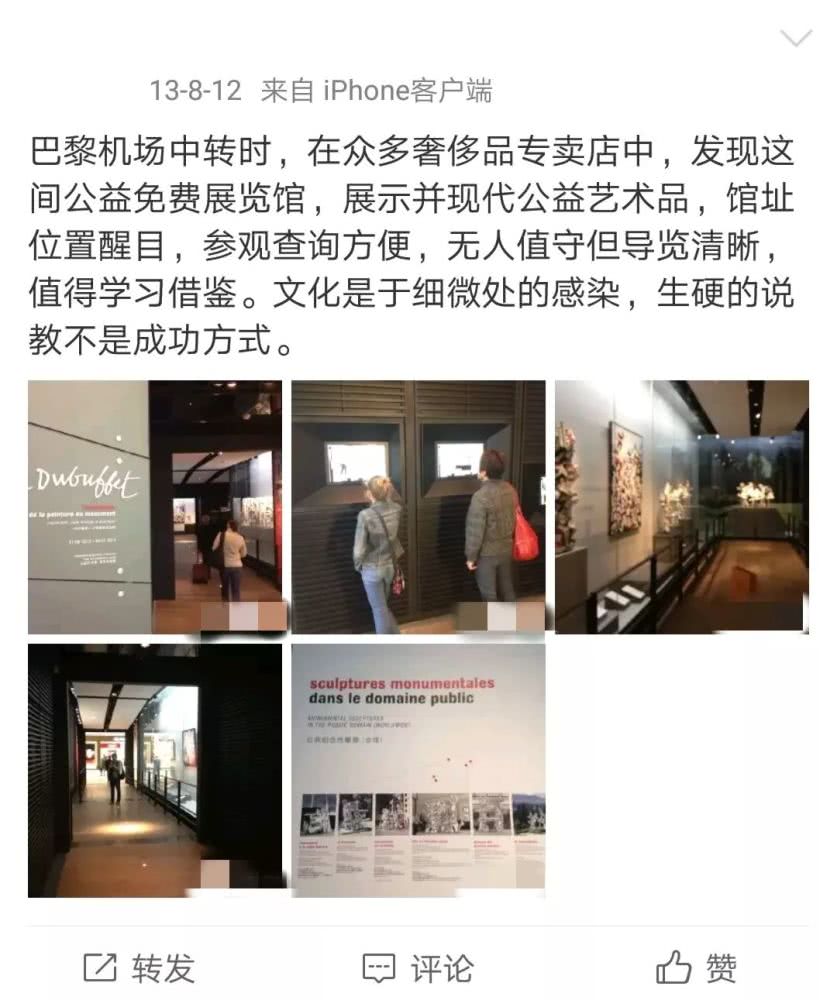 虽然机场在大多数人的印象中只是公共交通的一站,但最近却有不少机场办起了文博展览,为人们在繁忙行程之余提供别样体验。纵观巴黎、旧金山、上海、广州等地的机场,每年服务的旅客人次在五千万至七千万区间,试想哪怕每四百个人里只有1个人被展览所吸引(0.25%的比率),效果也不容小觑,更何况受众来自于多元的文化背景,对于文化传播来说更为锦上添花。