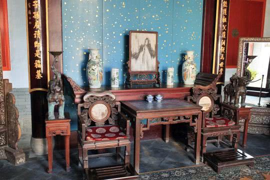 这里值得一提的是,即使是家族中位尊的主人,不行仪式之时,平时也只在右边落座,一是表示谦恭,二是虚位以待,因此中堂的座椅不经常同时使用。