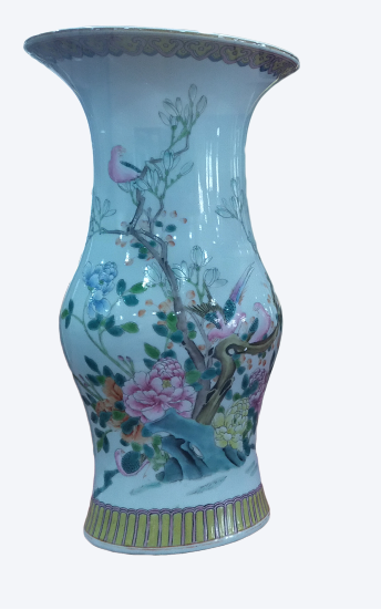随着瓷器烧造技术的不断提高,瓷器的造型更加丰富,很多陈设用瓷开始有了一定的实用功能。经过明代嘉靖、万历两朝的发展,花觚的造型也更加多样化。花觚始于元代,主要流行于明嘉靖、万历至清乾隆这一段时期。早期的花觚除了陈设用之外,民间多用于插花,布置厅堂。花觚的造型隽秀,端庄大方,线条变化十分丰富。常见的有五彩花觚和青花花觚两种。装饰题材有人物故事、民间传说、缠枝花卉或是花鸟等。花觚的时代特征十分明显,明代的花觚主要是三段式的,上面是喇叭口,中间是鼓腹,下部是凤尾,器型古朴典雅。我们常见的明代花觚以五彩最为贵重。一般都呈现出文饰繁密,层次分明,色彩艳丽,风格硬朗的特点。