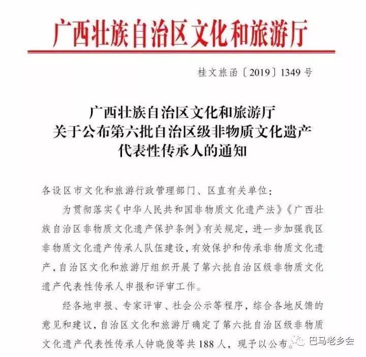 12月11日,自治区文化和旅游厅公布第六批自治区级非物质文化遗产代表性项目代表性传承人名单,我市共有19人入选,人数在广西排名前列。