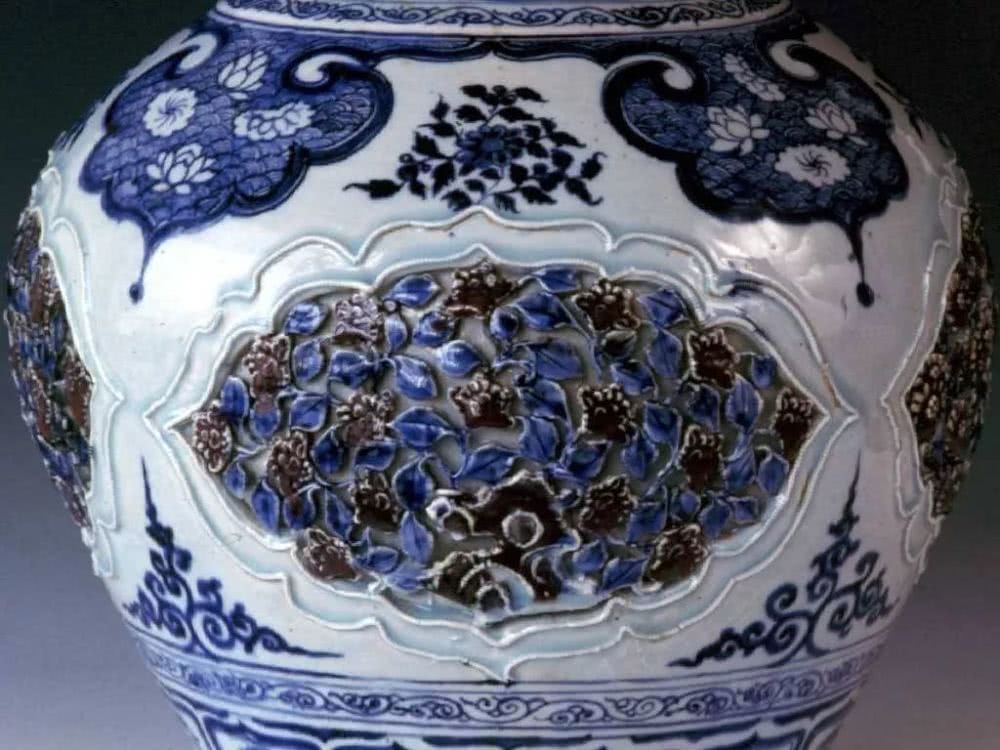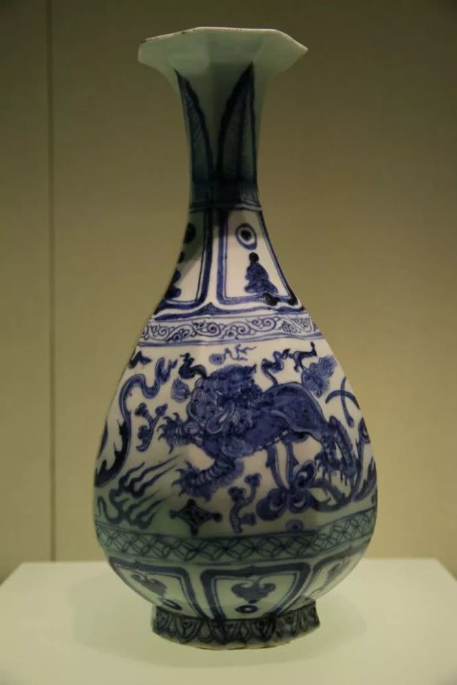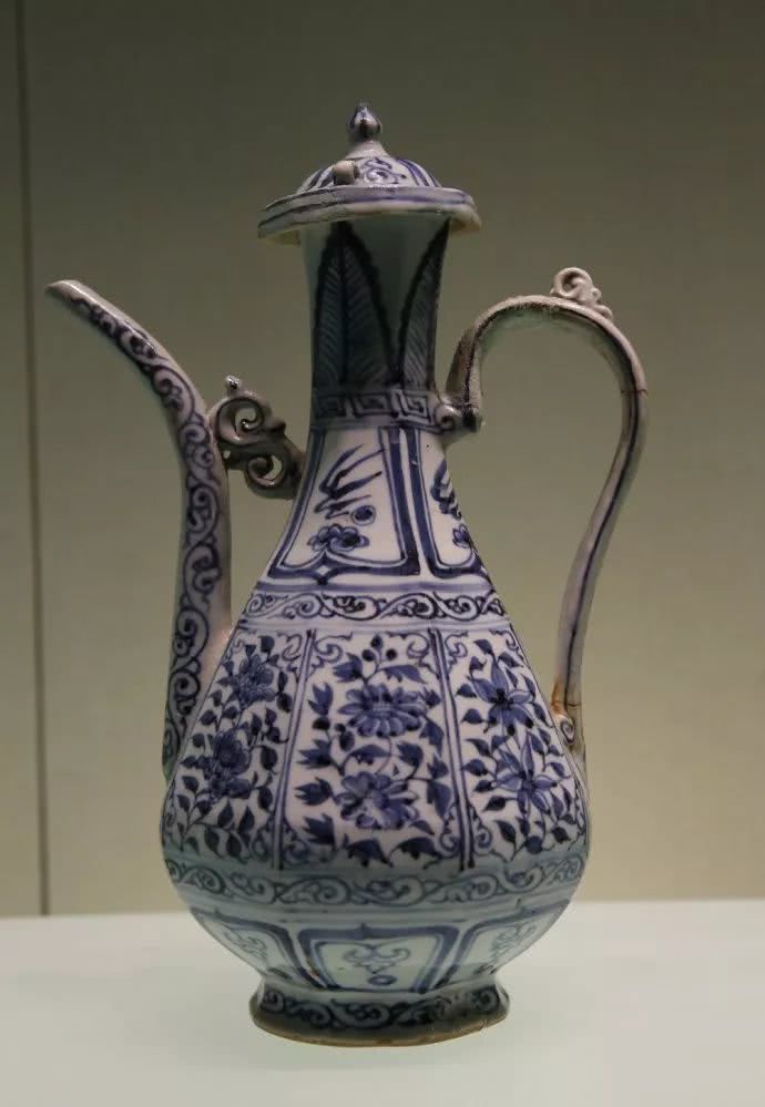 青花萌生于唐,但由于胎质疏松,瓷化程度低,故有学者称之为“白釉蓝彩陶器”,算不上真正意义的青花瓷。到了元代后期,景德镇窑采用瓷石加高岭土的“二元配方”,借鉴磁州窑和吉州窑釉下彩绘技术,引进西亚“高铁低锰”的钴料,才将青花瓷器创烧成功。元青花开辟了由素瓷向彩瓷过渡的新时代,其富丽雄浑、画风豪放,绘画层次繁多,被称为中国陶瓷史上的一朵奇葩。