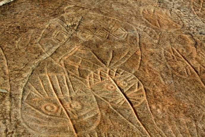 当然啦,这种洞穴并不常见,还有很多刻画在岩石上的图画留存到了现在。比如在连云港锦屏山南麓的将军崖画,据专家考证,这幅画距今大约有7000年;更古老一些的石洞壁画,是在西班牙北部的一个小镇,2016年考古学家公布,那面壁画估计有1.45万年历史了。