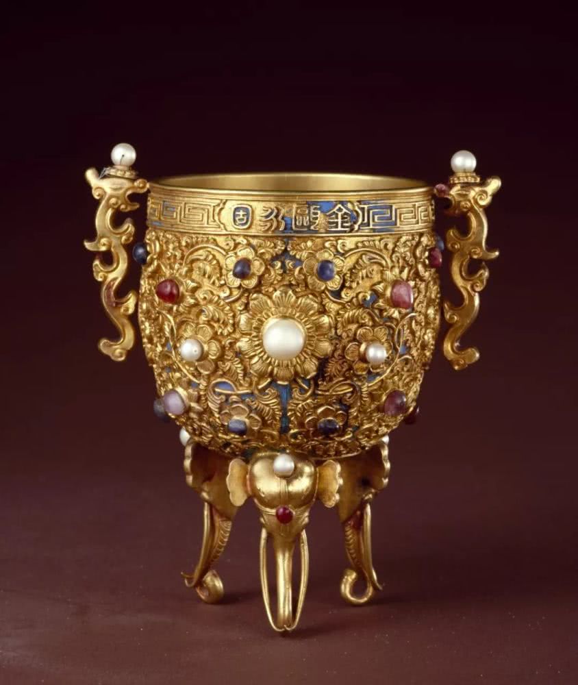 作为一年使用一次的贵重之物,“金瓯永固”杯的制作受到皇帝高度重视。工匠先要精细地描画图样,经皇帝过目批准后才能承做。制作过程中,不仅要用到黄金、珍珠、宝石等珍贵材料,使用花丝镶嵌、錾刻等多种精细工艺,还要再三修改图纸,直至皇帝完全满意。