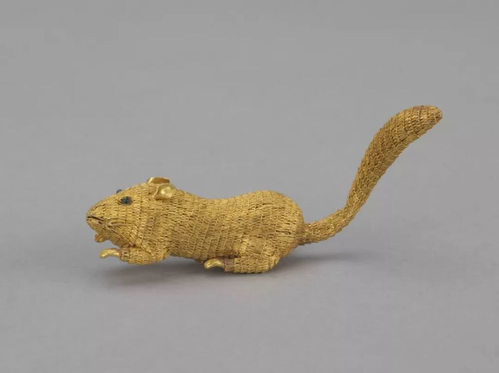 鼠年即将来到,展厅里以金累丝工艺制成的金丝小鼠也值得一看。这只小鼠精致小巧,做工复杂,眼睛的位置原来还嵌有红色宝石。在新年里,可能也是备受孩子们喜爱的玩具。