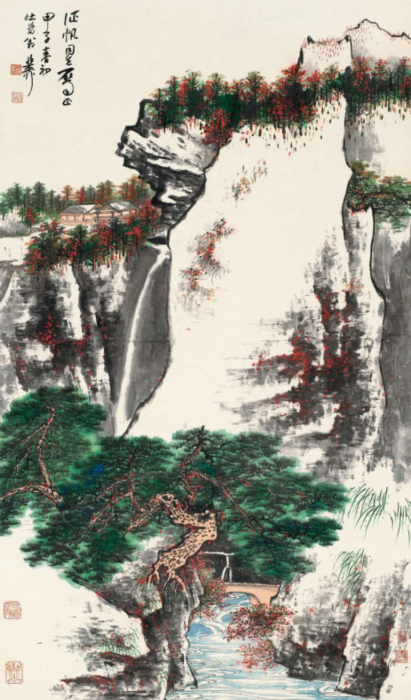 通览此幅画作,结构布局严谨,包罗气象万千,既有宋元遗风的继承,又有画家对江南山水风云变幻的把握和理解;既有挥洒泼墨的大气魄,也有精微细腻的笔触,可见谢老深厚的学识修养和非凡的绘画技巧。