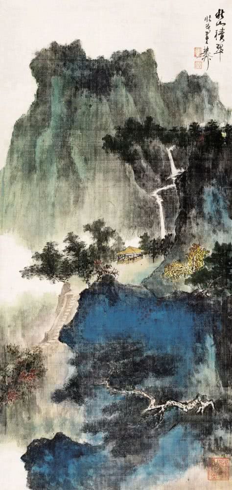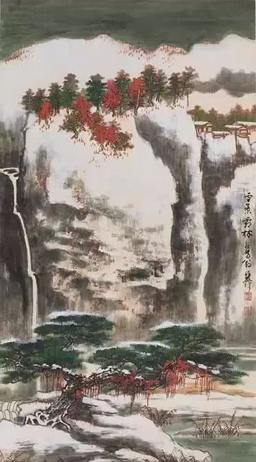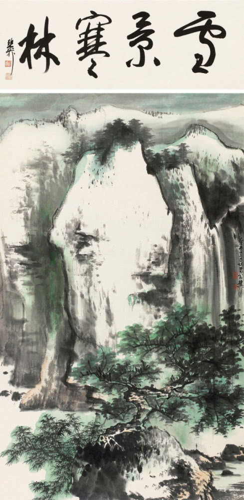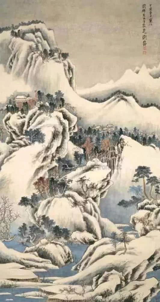 谢稚柳晚年研究徐熙“落墨法”,墨彩相依,自成一格。此副雪景山水谢老大胆落墨非常人所敢为,堪称先生“江南画派”的雪景青绿山水经典之作。