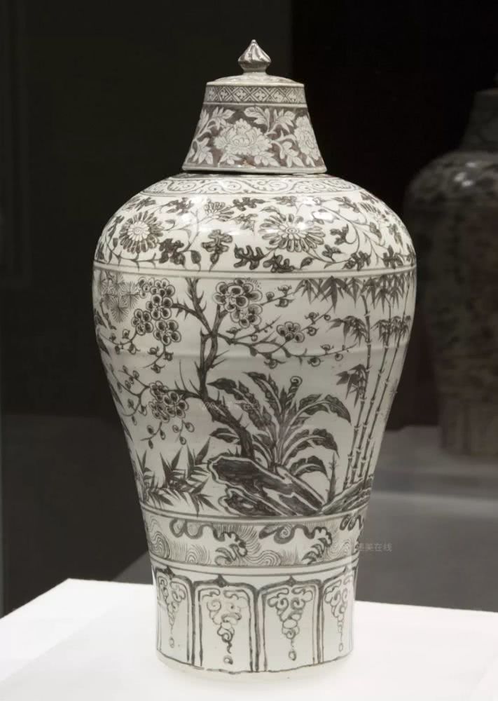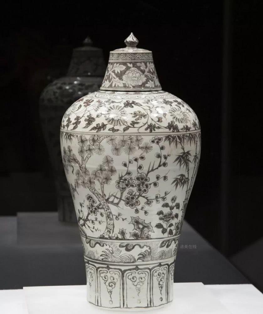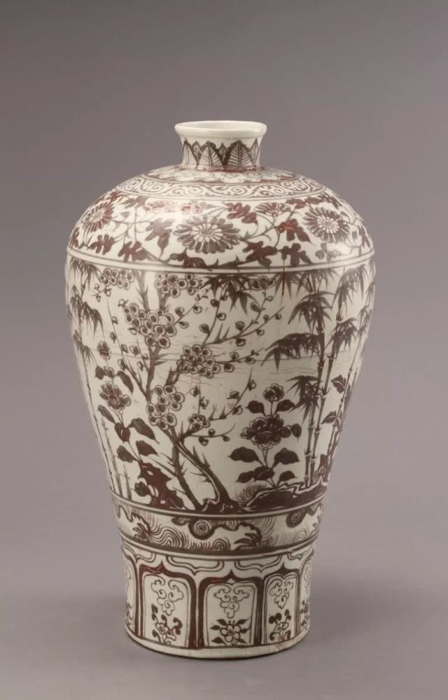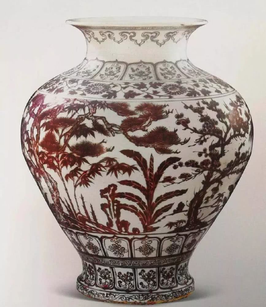 南京博物院收藏各类文物43万余件,其中瓷器近半,明洪武釉里红岁寒三友纹梅瓶便是其中难得的精品。