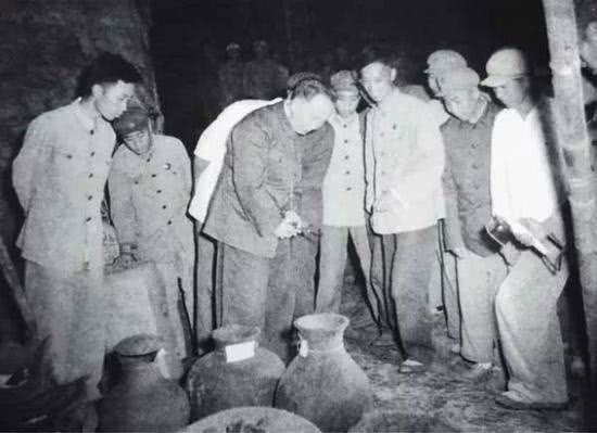 1968 年时任中国科学院院长郭沫若在满城汉墓发掘现场指导工作