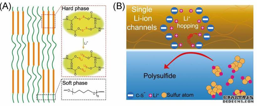 现在,中国江苏省苏州大学锂硫电池能源与材料创新研究院(oochowInstituteforEnergyandMaterialsInnovationsforLithium-sulfurBatteries)的科学家为锂硫电池研发了一种单锂离子通道聚合物粘结剂。此种新型粘合剂具有单一的锂离子通道,在允许快速运输锂离子的同时,阻止多硫化物阴离子在电解液中穿梭,从而解决了锂硫电池能量严重衰减的问题。