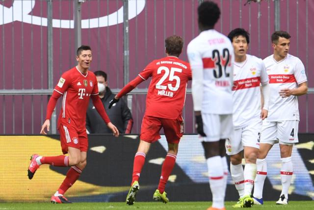 第22分钟,托马斯-穆勒在右路送出传中,莱万头球破门,拜仁3-0领先;
