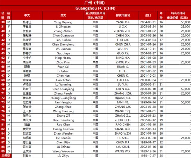 6月17日晚,德转朱艺公布了新赛季亚冠小组赛恒大的30人报名名单,其中就有杨德江。值得注意的是,杨德江目前德转身价5万欧,是全队身价第二高的球员。相比入选名单的其他球员,杨德江可谓名气更大,因为他是这支球队中唯一曾踢过中超的球员。今年联赛对深圳队,杨德江在最后时刻替补出场,换下队长郑智,上演中超首秀。能够在16岁的年纪就登上中国顶级联赛赛场,这可以看出卡纳瓦罗对他的潜力很看好。
