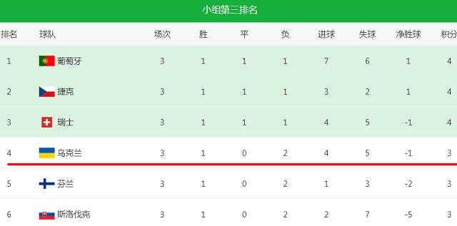 当乌克兰在最后一场小组赛中0比1输给奥地利后,只积3分的他们相信已准备打包行李回家了,因为后面几个小组一大把3分球队还有比赛未踢,只要竞争对手们打平甚至取胜,乌克兰就得回家。然而,在乌克兰球员“算分”2天后,他们真的等来了奇迹,芬兰、俄罗斯、斯洛伐克均以2球以上的比分失利,积3分的乌克兰由于净胜球优势,成为小组第3排行榜第4压哨出线,晋级16强,堪称奇迹!