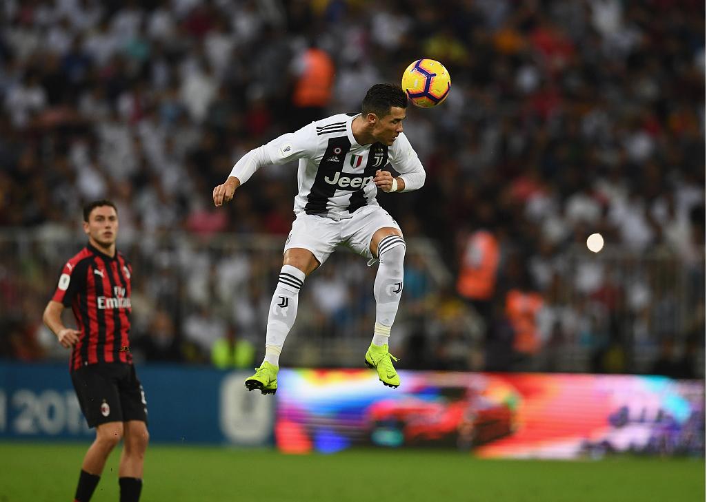 当今足坛,身高1.85米的C罗才是头球第一人。比赛中经常可以看到葡萄牙巨星惊人的弹跳+滞空、暴力头槌破门。上赛季意甲第23轮,尤文3:0完胜克罗托内一役,C罗头球梅开二度,职业生涯头球进球数达到133球,五大联赛现役球员第一人。