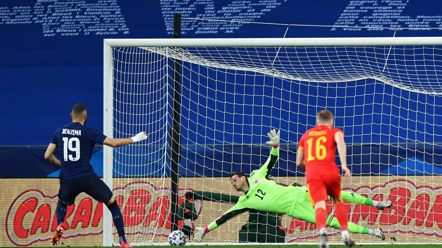 33岁的本泽马今仗为对手制造不少麻烦,格列兹曼罚球传中,门前一轮混战,本泽马近门起脚逼使威廉姆斯(Neco Williams)以手挡出皮球,球证吹罚12码兼出示红牌。本泽马亲自操刀12码,可惜被威尔士门将丹尼·沃德(Danny Ward)单手扑出。本泽马在下半场继续努力地争取入球,可最终还是未能以入球庆祝自己回归国家队。不过本场友谊赛,就算本泽马无入球,法国入球依然无难度,由姆巴佩先开纪录,加上格列兹曼和登贝莱下半场各建一功,结果以3-0轻取威尔士。