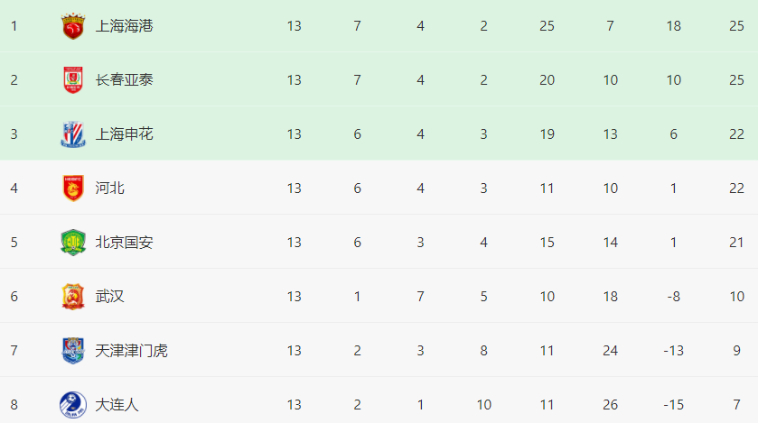 前面13轮战罢,上海海港7胜4平2负积25分,暂时以净胜球的优势排在苏州赛区的榜首之位。上一轮0:1不敌河北队,让上海海港的榜首之位变得非常不稳固。本轮如果不能战胜天津津门虎,就有可能让出苏州赛区的榜首之位。有鉴于此,本轮对阵天津津门虎,上海海港一定会全力争胜,力争以苏州赛区第一名进入下一阶段的争冠角逐战。