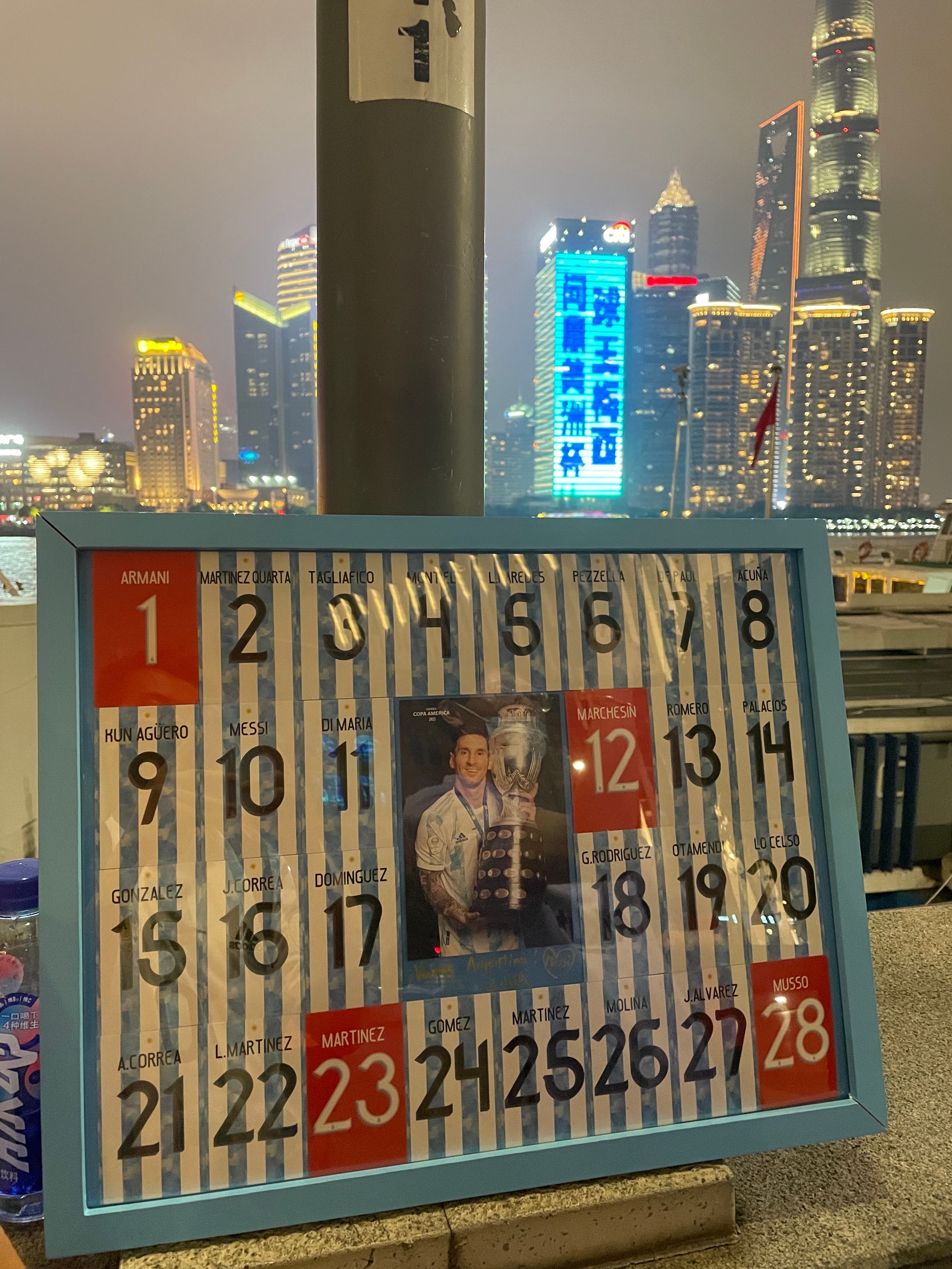 另外还有梅西的10号战袍,以及他们对于梅西的致敬,上面写着包括:“球王梅西问鼎美洲杯。”、“巅峰16年再起征程。”还有他身穿巴黎30号球衣,身穿阿根廷10号球衣等等的场面,映衬在面前的黄浦江上,显得非常璀璨和引人关注。还有很多的球迷都现场拍下了自己见证这一幕的激动时刻,而现在这件事直接出圈了。