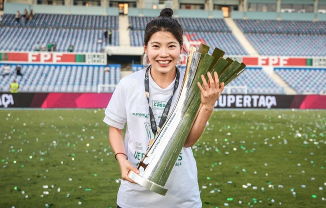 北京时间8月29日,最年轻的留洋新星沈梦雨也传来了好消息,他比女足2大巨星唐佳丽、王霜都要幸运得多,初留洋入葡超豪门,在还未完成首秀的情况下,今日在社交媒体平台发表动态,亮出了自己在葡萄牙体育的金牌。原来,沈梦露今日随队获得了葡萄牙超级杯冠军,留洋即夺首冠,堪称梦幻的留洋之旅。