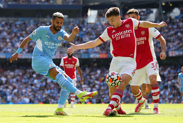 曼城5-0大胜阿森纳队。比赛第6分钟京东安为曼城队首开记录。第11分钟费兰托雷斯破门,场上比分变成了2-0。第34分钟扎卡染红离场,阿森纳少一人作战。第42分钟热苏斯破门,曼城3-0领先。第53分钟罗德里推射再入一球,场上比分变成了4-0。第83分钟费兰托雷斯梅开二度,最终比分定格在了5-0。
