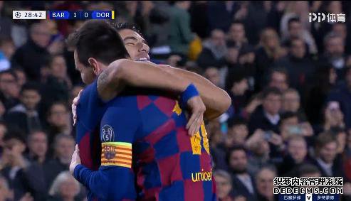 第28分钟,梅西送出致命直塞,苏亚雷斯反越位成功,随后打门穿过门将布尔基的小门取得破门,1-0!