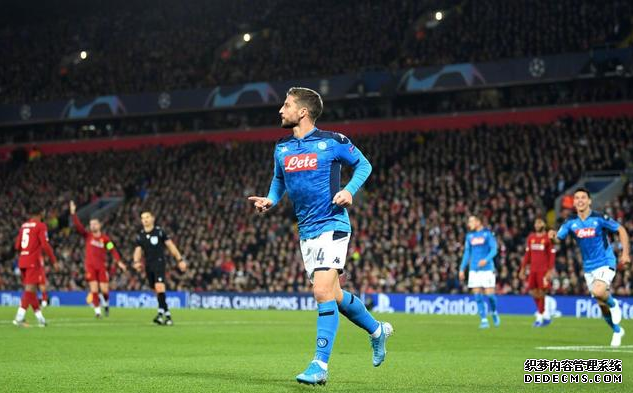 没想到的是,率先取得进球的,是客队。比赛第21分钟,默滕斯利用反击机会,小角度劲射破门。