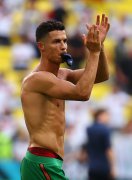 C罗赛后感谢球迷。2-4不敌德国的赛后,C罗和自己的皇马老队友克罗斯深情拥抱,然后总裁脱下了球衣,露出他那一身标志性的腱子肉。 随后C罗把队长袖标叼在嘴里,感谢着全场球迷,