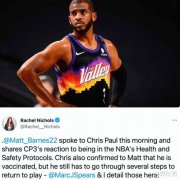 北京时间6月17日,NBA最新消息,保罗触发了联盟的健康与安全协议,将会无限期缺阵!之后又有消息称,保罗是确诊了新冠,所以,最少都要隔离14天,等保罗14天出来,那么太阳队黄花